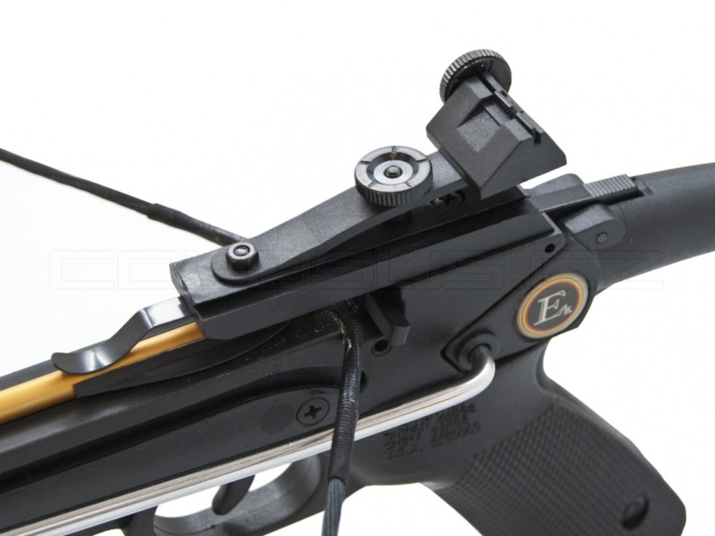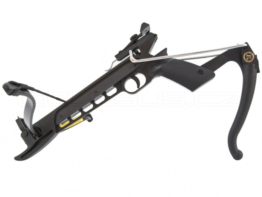 Pistolová kuše Cobra je vhodná pro rekreační střelbu na terč ve vzdálenosti 10 - 15 m. Pozor nejde o hračku! Lučiště pistolové kuše Cobra s napínací silou 80 LB dokáže předat šípu počáteční rychlost až 175 FPS. Samotné tělo, rám kuše je vyrobený ze slitiny kovu. Následně je rám doplněný o plastové střenky rukojeti a předpažbí v dekoru dřeva. Natažení pistolové kuše Beast Hunter Cobra se provádí za pomocí páky. Tento systém má vlastní označení Cobra System. Kuši uchopíte za výčnělek v přední části a za pomocí současného pohybu páky v zadní části k sobě dojde k natažení tětivy díky táhlům do zajišťovacího spoušťového mechanismu. Páku po natažení vrátíte zpět do původní polohy a následně vložíte šíp. Tímto je kuše připravená k výstřelu. Pákový systém nátahu kuše vyžaduje méně síly pro natažení tětivy. Předepsané šipky pro tento model kuše mají délku 6,5". Vzhledem k síle lučiště doporučujeme kovové šipky s touto délkou. Mířidla kuše Cobra se skládají z pevné mušky a výškově i stranově stavitelného hledí na liště 22 mm. Po sundání hledí je tak možné kuši Cobra osadit kolimátorem či optikou. Jištění na zbrani, kterou pistolová kuše jistě je, je to nejdůležitější. Tzv. pojistku zajišťuje přepínač za záchytem tětivy. V zadní poloze zajistí spoušť a není tak možné vystřelit. Pokud přepínač posunete vpřed kuši odjistíte.