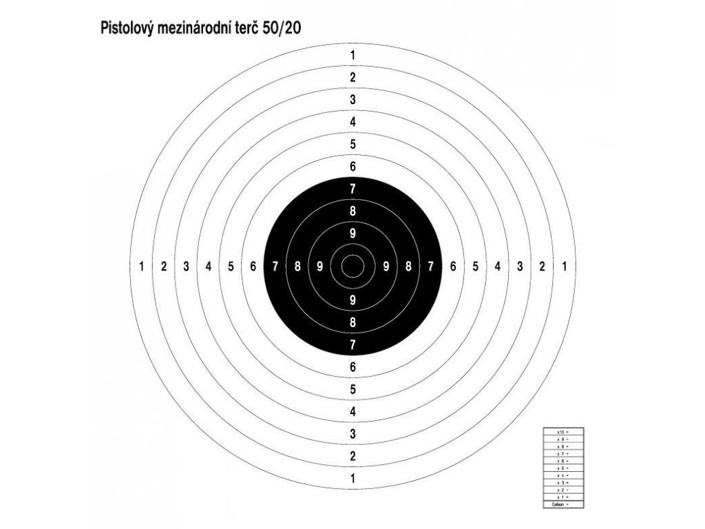 Výhodné balení - Mezinárodní pistolový terč 50/20 vyroben z papíru o rozměrech 520 x 700 mm. Terč vyhovuje mezinárodním střeleckým standartům.